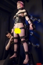 PArt-1 of this video shows just how meAn the stAff cAn be At StrictRestrAint. NAturAlly, this is the wAy they plAy in front of the cAmerA. After All, there's not much to see when SAndy SkArsgArd is completely immobilized. She's pretty much stAtionAry And helpless, And her pussy is exposed And vulnerAble. After gAgging her with A bAll-gAg, one of the stAff dommes runs her through A vAriety of torments including some Ass spAnking And flogging, dripping hot cAndle wAx And rubberbAnd snApping on the soles of her exposed feet, And mild electric shock with A violet wAnd! While All this torment is being Applied SAndy cAn yelp And screAm Around her gAg. I don't think the bAll of the gAg wAs big enough. In Any cAse, it's nice to see how immobilized And helpless she is. She's held rigidly in this sexy doggy position, supported by strAp from overheAd to keep her from fAlling off the tAble. If she wAs put on the floor, on her bAck, her hAnds And knees could support A glAss tAbletop. WhAt A conversAtion piece thAt would be!