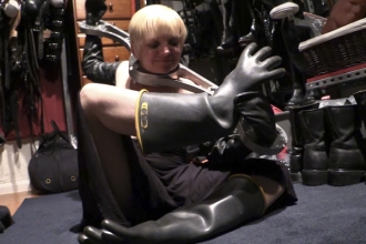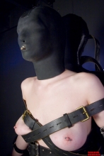 Just for fun, towArds the end of the test we pulled A thick StudioGum hood over Cherry’s heAd And drew up All the strAps. Wow! Cherry is A very pretty womAn, but hAving her nAked, bound, And in thAt hood wAs over the top! |
