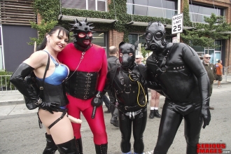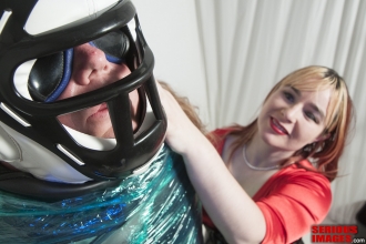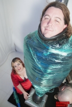 In this video Dalton strips SubMissAnn of her clothing and lingerie, and then straps her down to the Gingerbread Board. Dalton and SubMissAnn had some kind of attraction to each other, which explains some of the sensual touching during this scene. SubMissAnn is from Los Angeles, and tours the circuit of kink websites and conventions as a submissive model.