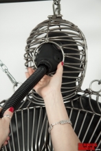 Mistress Gwen Freestorm teams up with Mistress Alice to torment slave Onyx. JG Leathers was on hand to help. The standing cage fits Onyx perfectly for some strange reason. This thing is a piece of art. The heavy rubber full enclosure suit is from Studio Gum. This is a fun video.