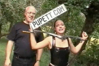 This amusing video titled ‘Bad Service' was produced by our German friends at Pupett.com in 2005. As many fetish stories go, the submissive was inattentive to her Mistress so she was increasingly punished with more and more metal bondage gear. She is shackled and her wrists are restrained with multiple pairs of handcuffs. Her elbows are cuffed. Then she is silenced with a metal gag. Finally, her lip piercing and nose clamp are connected with chain and clipped to an overhead wire which limits her movement between the service table and her Mistress. Those crazy Germans! This vintage video is in two parts, and is in the Quicktime format. Visit their websites for more fetish videos: Blood Angels, Clinical Torments, and Pupett.com.