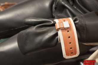 Extra heavy duty rubber gear is hard to find. This extra thick dry suit belongs to Felix a rubber fetishist. The feel of this gear is like entering another climate and reality. The sweat begins to flow as the body heat rises from the hot lights. The fan creates a chill as the rubber conducts all outside sensation. The hours of bondage ended in a few moments of sun bathing. She commented the next day that her skin still smelled of rubber.