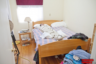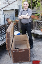 In this hilarious 3-part video our friend Mummy Ed explores his fascination with bondage, transportation and storage of various willing subjects. Utilizing an old trunk, Ed installed metal attachment points inside for fastening his subject's wrists and ankles with Clejuso cuffs, Mr.S mitts and drilled a hole in the side of the trunk to accommodate an air intake hose from a special rubber gas-mask hood from Maxcita. The result is a transportation box which is just big enough to fit his favorite submissive Brianna, who is shackled, locked, gas-masked and sealed inside for a tour of San Francisco. Although she can't see outside, she can feel the movement of Ed's van as he drives up and down the steep hills of the City, and the bumps in the pavement as she's rolled along the sidewalk and across busy intersections on a furniture dolly. If the drivers only knew what was in the old truck! This is a Mad Hatter's ride for sure and could only happen in San Francisco. Ed rolls the trunk into a local café where he receives a round of applause as he opens the top and the patrons gaze upon his sexy bound cargo!