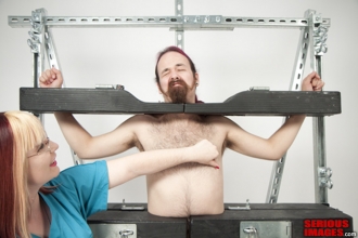 Alice brings her kinky friends for some bondage and a very skillful blow job. SBI is not usually so sexual but now and then a world class blowjob is fun. The classic vertical stocks usually keep a captive unable to enjoy sexual pleasure, but this time sexual assault can't possibly be avoided. Enjoy this very hot video.